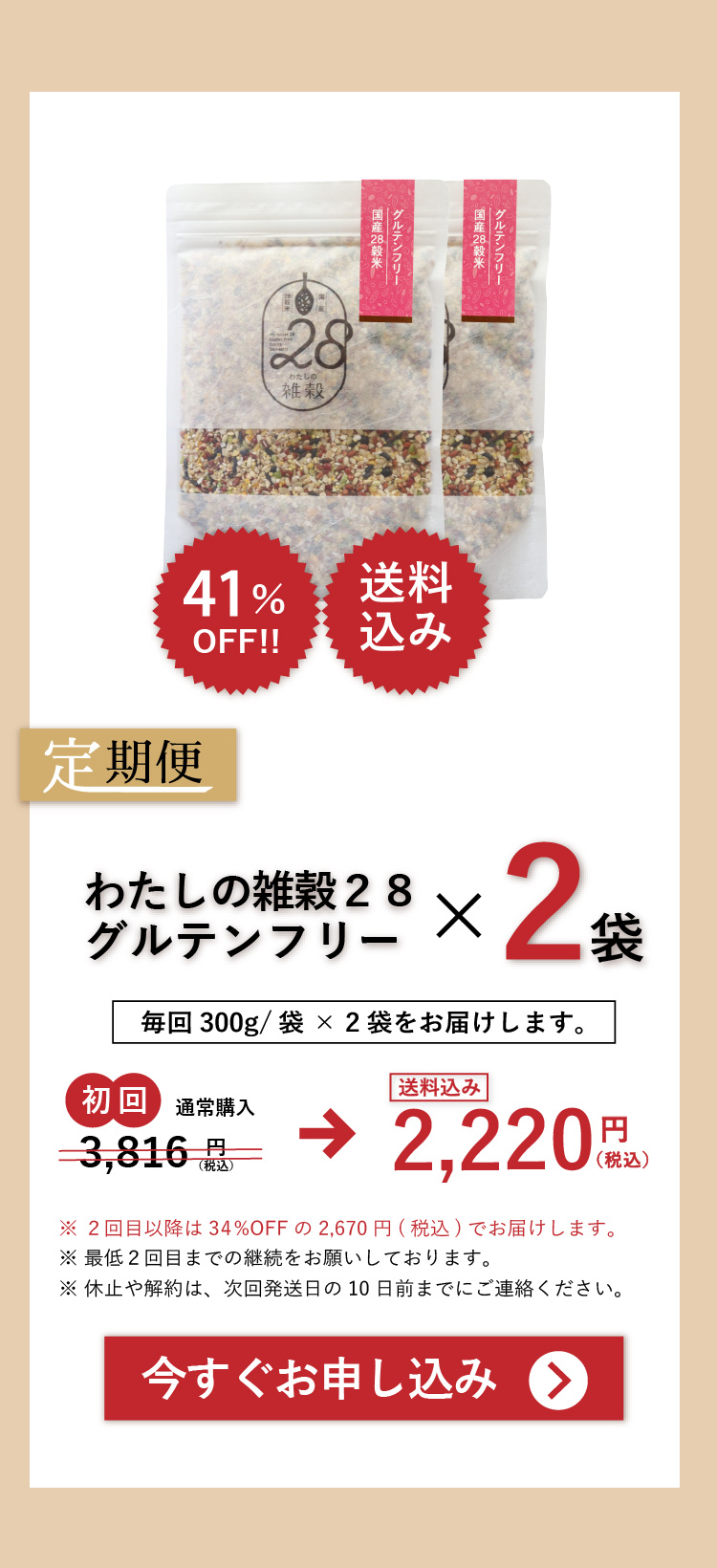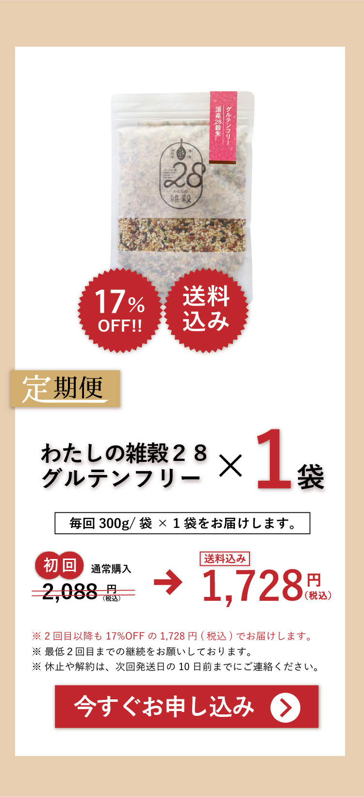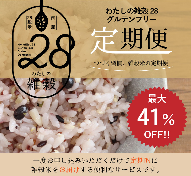 定期便のご案内 わたしの雑穀28グルテンフリー 3つのメリット 定期便2袋 定期便1袋