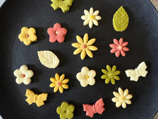 米粉とさつまいもの花びらクッキー(愛犬の無添加おやつ) 色鮮やかな花びらを形をしたかわいい米粉クッキーです。